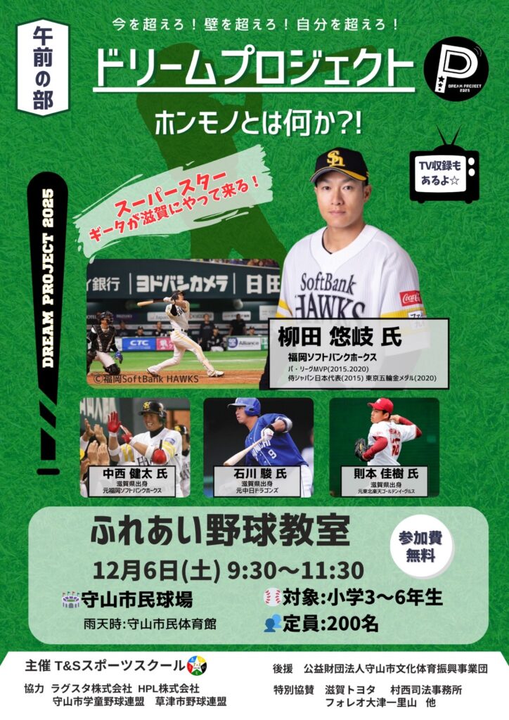 〝ギータ〟柳田悠岐選手がT&Sにやってくる!! DREAM PROJECT2025 開催のお知らせ⚾️